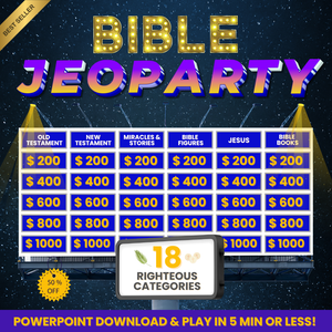 Are you looking for a fun and interactive way to engage your church group, youth ministry, or Bible study class? The Bible Jeoparty Game Bundle is a ready-to-play PowerPoint set designed to bring energy, laughter, and learning to any Christian gathering. Whether itโs Sunday school, a womenโs ministry night, or a church retreat, this game is sure to encourage teamwork, friendly competition, and Scripture-based fun.