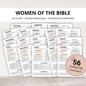 ✅ 56 Women of the Bible character summaries with overview, notable traits, biblical significance, historical context, and life application reflection